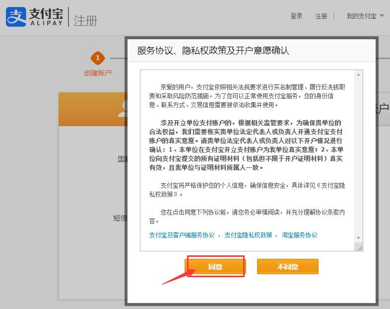 點擊注冊,彈出來的服務協(xié)議點擊“同意服務協(xié)議”。