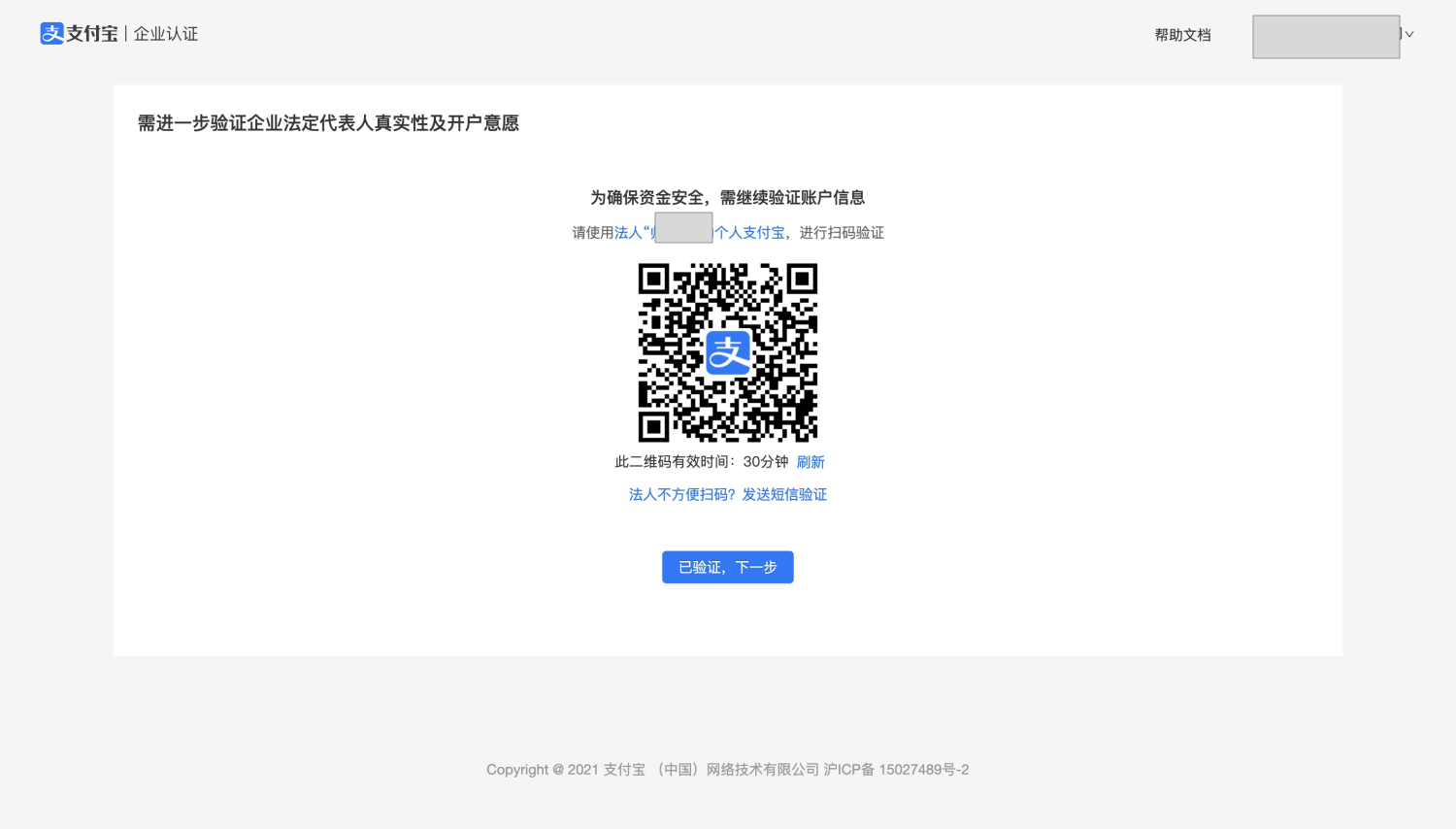 ? 企業(yè)員工代理或企業(yè)的法定代表人/經(jīng)營者/負責人親自操作,需已認證個人支付寶掃碼核驗身份。