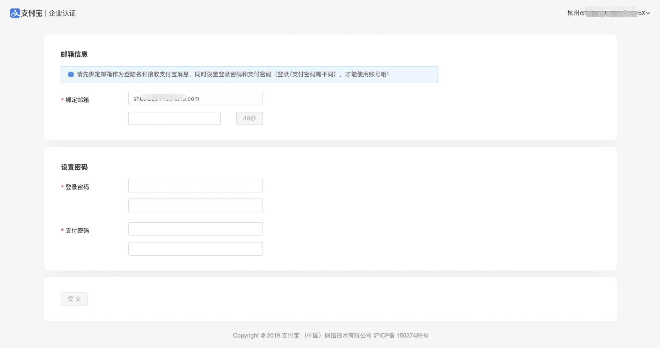 ? 郵箱號(未注冊過支付寶和淘寶賬號);如果注冊過需要新注冊一個郵箱號。