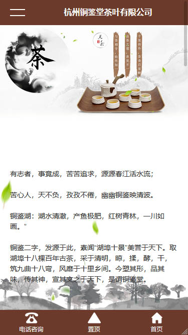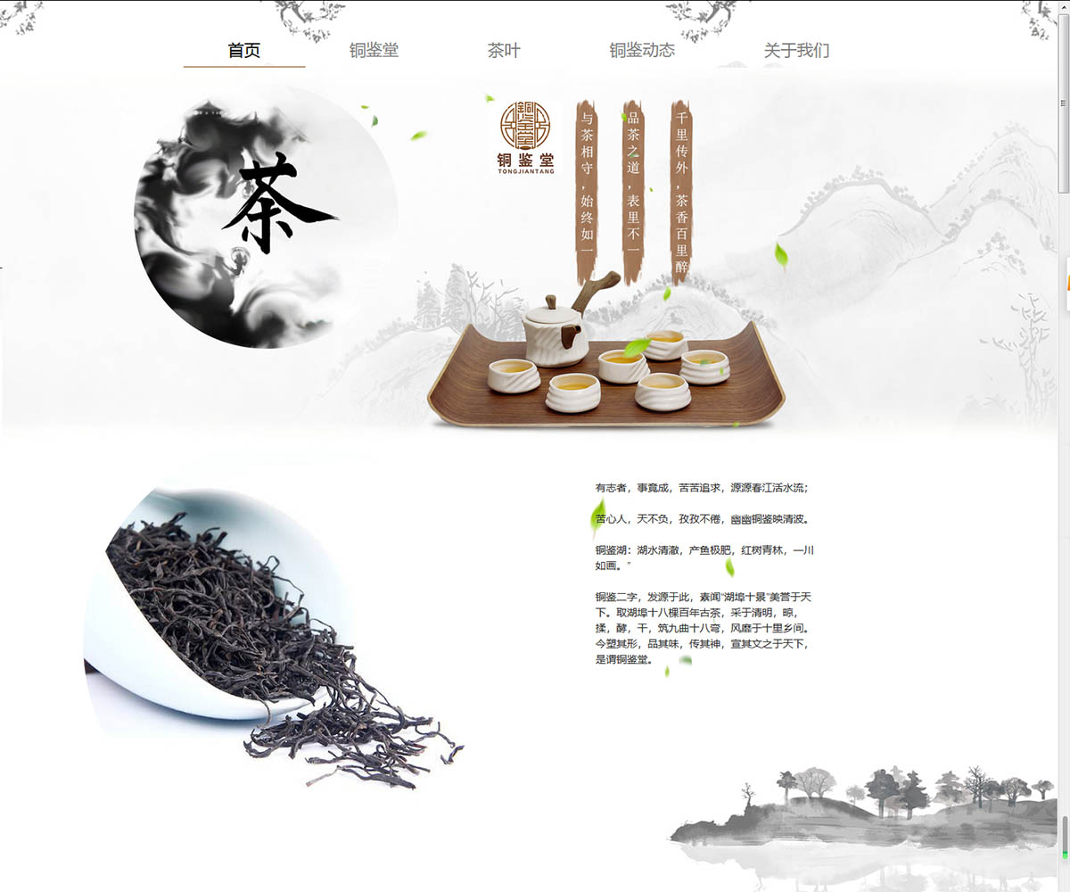 風(fēng)信網(wǎng)絡(luò)響應(yīng)式建站某茶葉有限公司,取湖埠十八棵百年古茶,采于清明,晾,揉,酵,干,筑九曲十八彎,風(fēng)靡于十里鄉(xiāng)間。今塑其形,品其味,傳其神,宣其文之于天下,是謂銅鑒堂。